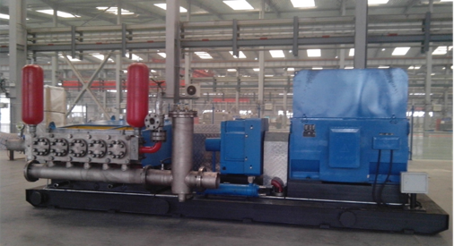 5ZB Large Flow Plunger pumps are horizontal triplex single active reciprocating pump series. It mainly consists of power end, fluid end and lubrication system.It is mainly used for high pressure water injection and industrial or civil high pressure lifting water. Power rate range: 450~900kW,flow rate range:26~216 m3/h,discharge pressure range: 6.3~50MPa, Stroke: 180-200mm, Sucking pressure:0.02~0.1MPa.