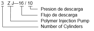 Rango de rendimiento Tipo de Bomba: Bomba de embolohorizontal 3 cilindros Dise?o: API674、GB/T9234 Flujo de descarga: 0.5~15m3/h or 2.2~66GPM,maximum Presionde descarga:25 MPa or 3675 PSI Medio de Transmisión: solución depolímero Temperatura del medio: ≤80℃ Uso: utilizadoprincipalmente para el transporte de la solución de polímero, lejía,surfactante, líquido binario, ternario líquido y así sucesivamente.